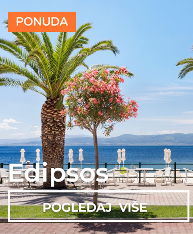 Edipsos je banja Grčke i bogata je termalnim vodama koje izviru iz pukotina stena i predstavljaju pravi termalni ugođaj. Voda se u ovom mestu koristi kao lekovita, kako u hotelima, tako i u raznim lekovitim centrima koji su zastupljeni u ovom mestu. Na nekim izvorima ova lekovita vode dostiže temperaturu i do 70C i pomaže mnogim hroničnim oboljenjima. Pored toga što poseduje lekovitu vodu i termalne izvore, mesto je jako urbano i prepuno sadržaja. Dužinom čitave obale se prostire šetalište na kojem su smešteni restorani, kafići, barovi, taverne. Mesto turistima nudi bogat izbor smeštaja, od luksuznih spa hotela sa termalnom vodom, do skromnih apartmana na bazi najma. Preporuka je svima, i svi mogu naći sadržaje koji zadovoljavaju svačije potrebe. Plaža u Edipsosu se razlikuje od svih mesta i autentična je po tome što uglavnom dominiraju stene sa pukotinama gde izvire vruća termalna voda. U samom centru grada nalazi se plaža Eagli, a na svega 3km od mesta smeštena je divna plaža Agios Nikolaus. Prava rajska plaža koju nikako ne bi ste smeli da propustite je Porto Pefko, na svega 8km udaljenosti od Edipsosa.