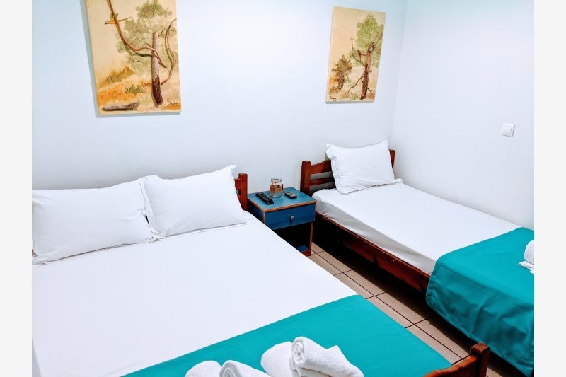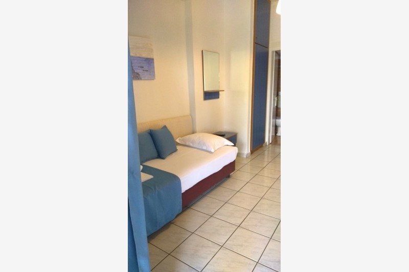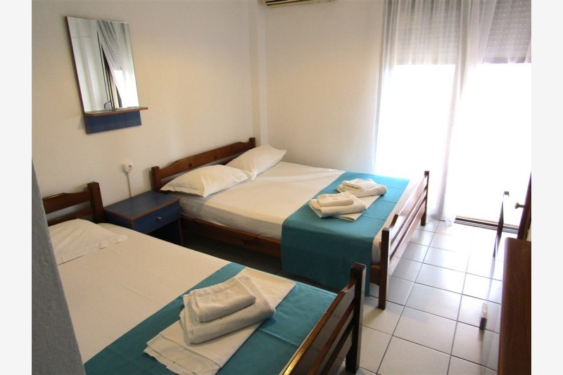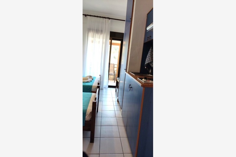 Vila Bambola se nalazi na samoj plaži u Nea Mudanji. Objekat poseduje parking prostor, letnjikovac sa roštiljem, tuš i toalet za poslednji dan boravka. Veliko, lepo uređeno dvorište izlazi na plažu gde gosti mogu besplatno koristiti suncobrane. Gostima su na raspolaganju i ležaljke koje se nalaze u dvorištu objekta, uz obavezu njihovog vraćanja nakon korišćenja na plaži. Svaka smeštajna jedinica poseduje osnovno opremljenu kuhinju, kupatilo, terasu, TV. Korišćenje klima uredjaja uključeno u cenu najma apartmana. Promena posteljine i peškira je na polovini boravka a u objektu postoji i mogućnost korišćenja WiFi interneta.