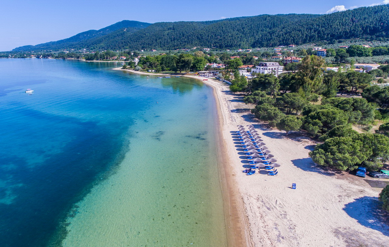 Najpoznatija plaža u ovom području je plaža Karidi koja se smatra se jednom od najlepših plaža Sitonije. Karidi plaža ima prirodni hlad, a tu su i dve mobilne kantine ukoliko poželite neki sendvič ili piće. Plićak i peščani sprudovi do 30m od obale, sitni beli pesak na obali i na dnu, za decu savršeno i potpuno bezbedno. Ponekad zna da bude pri obali malo trave. Preskočite je i prepustite se predivnoj tirkizno-plavoj boji mora.